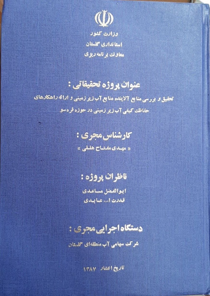 -تحقیق و بررسی منابع آلاینده آب زیرزمینی و ارائه راهکارهای حفاظت کیفی آب زیر زمینی در حوضه قره سو، سازمان مدیریت و