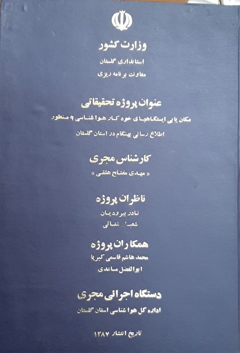 – مکان یابی ایستگاههای خودکار هواشناسی به منظور اطلاع رسانی بهنگام در استان گلستان، سازمان هواشناسی استان گلستان، 1386