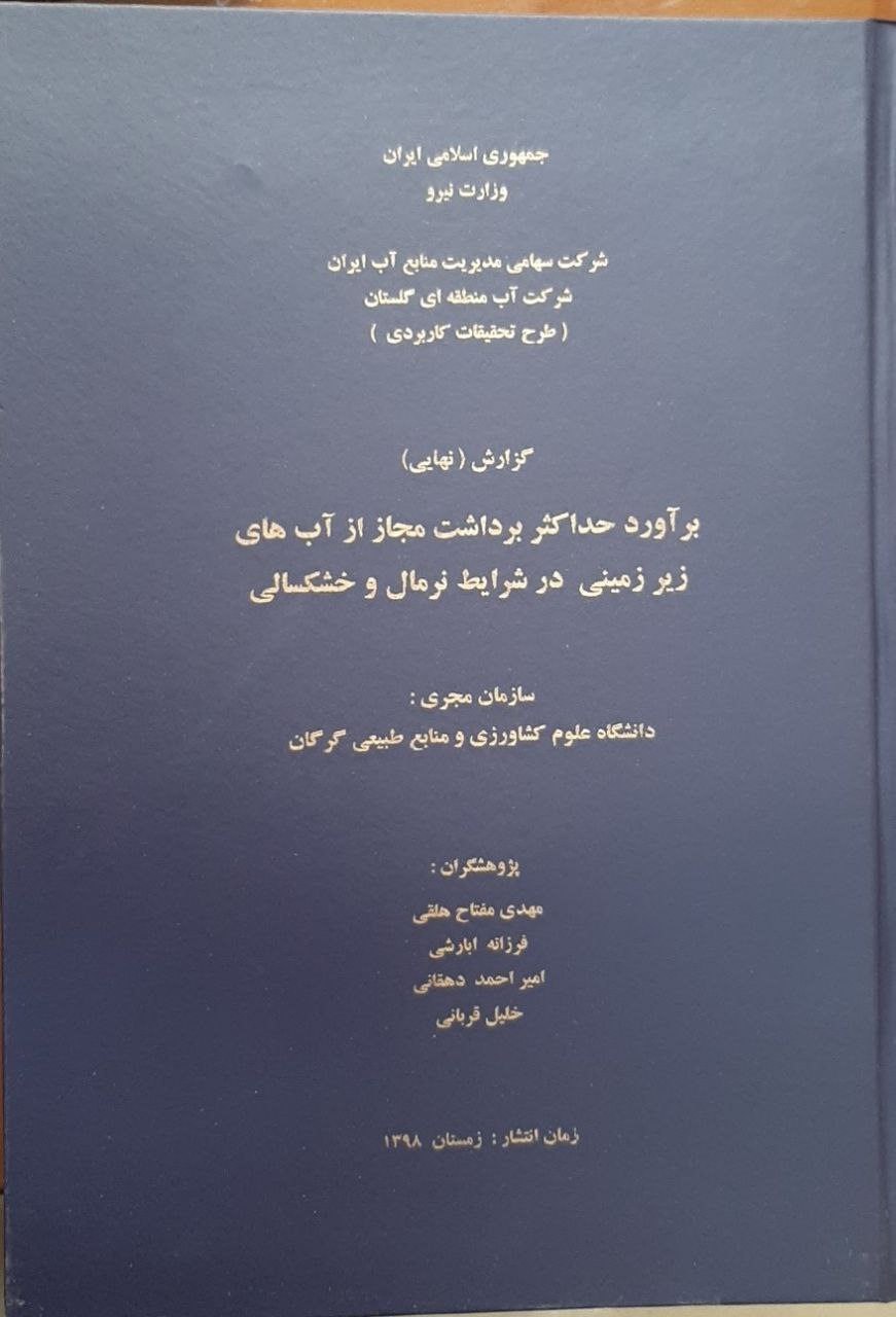 -تعیین حداکثر مجاز برداشت از آب زیرزمینی، مطالعه موردی:حوضه قره سو از استان گلستان، شرکت سهامی آب منطقه ای گلستان 1398